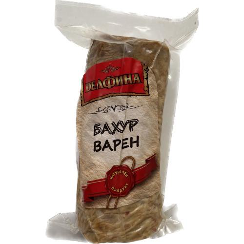 Delfina Boiled Bahur is an authentic Bulgarian delicacy, made from a traditional mix of pork and beef head meat, pork white lung, pork hearts, natural thick casings, and aromatic spices. Carefully boiled and vacuum packed for maximum freshness, this classic recipe is a favourite in Bulgarian households and traditional cuisine.