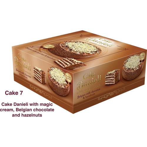 Indulge in the luxurious taste of Danieli Cake with magic cream, Belgian milk chocolate and hazelnuts — a premium layered dessert combining smooth dairy cream, rich cocoa sponge layers, authentic Belgian chocolate and crunchy hazelnuts. This elegant cake delivers a deep chocolate flavour and creamy texture perfect for celebrations, cafés, restaurants and Eastern European food shops across the UK and Ireland.