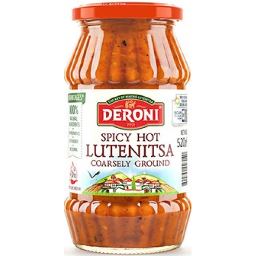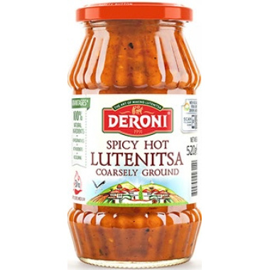Spicy Hot Lutenitsa Coarsely Ground 520g Jar Deroni - Experience the authentic taste of Bulgarian tradition with this coarsely ground hot lutenitsa from Deroni. Made with a delicious variety of vegetables, including grilled red peppers, peeled aubergines, and hot peppers, it offers a unique, appetizing flavor. Crafted with vegetables from the sunny Deroni Gardens and natural spices, this lutenitsa contains no preservatives, making it a wholesome and flavorful addition to your meals.