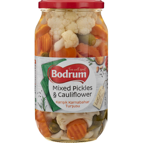 Bodrum Pickled Cauliflower is a traditional product made with carefully selected cauliflower, carrots, and red peppers for a perfect balance of crunch and flavor. Prepared with an authentic recipe, this pickle is an excellent addition to salads, main courses, or as a side dish. Ideal for small businesses and shops offering high-quality traditional foods.