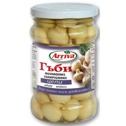 Cultivated mushrooms 53%, water 45%, salt 2%, acidity regulators: citric acid and ascorbic acid.
