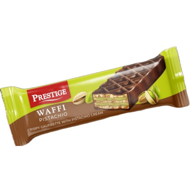 Enjoy the perfect blend of crispy wafer sheets, smooth pistachio cream, and a rich cocoa coating in this delightful snack.