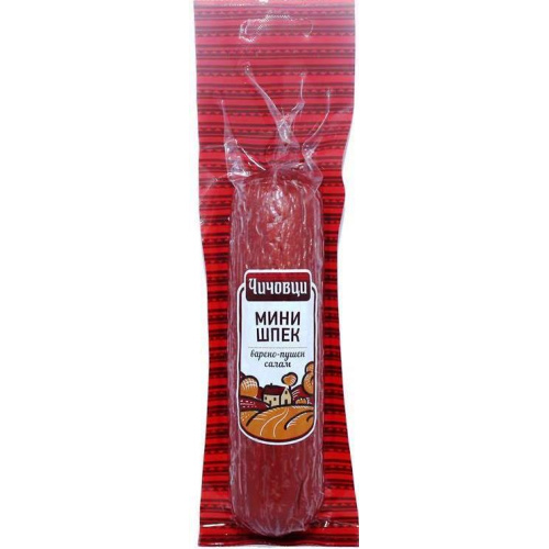 Indulge in the rich and savory taste of Salami Mini Shpek Classic by Chichovtsi. 170g premium mini shpek salami, crafted using high-quality ingredients and traditional recipes. Perfect for sandwiches, charcuterie boards, or as a snack, these mini salamis offer an authentic and satisfying flavor experience. Chichovtsi's Salami Mini Shpek Classic is ideal for any occasion where you want to enjoy delicious and classic Bulgarian salami.
