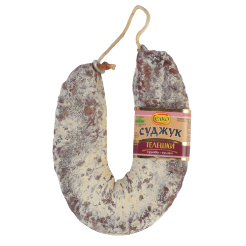 Savor the exquisite taste of Veal Sudjuk by Elko. Each pack contains 5 pieces, approximately 200g each, of premium dry-cured veal sudjuk, crafted using high-quality ingredients and traditional recipes. This authentic Bulgarian sausage offers a rich and robust flavor, perfect for charcuterie boards, appetizers, or enjoyed on its own. Elko's Veal Sudjuk brings the best of Bulgarian culinary tradition to your table.